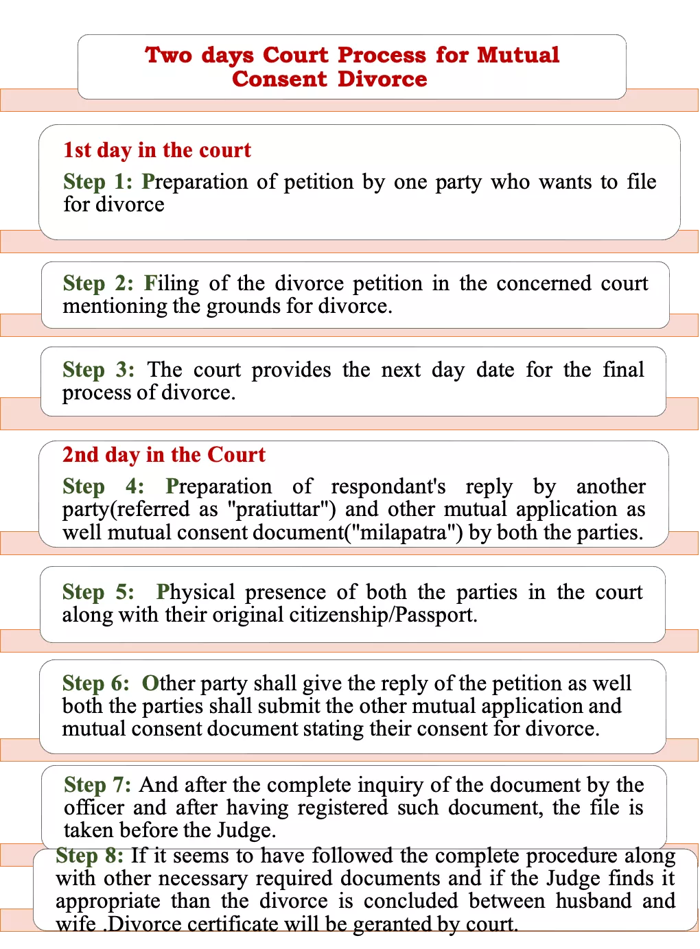 | Step 8 | If the Judge finds all procedures followed and documents complete, divorce is concluded between husband and wife. |
