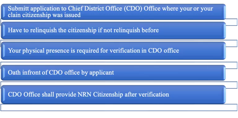 Process of applying NRN Citizenship through District Administration Office is mentioned below: