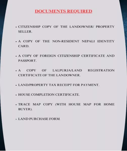 a.Required Documents for NRN for the purchase of Land/Property in Nepal