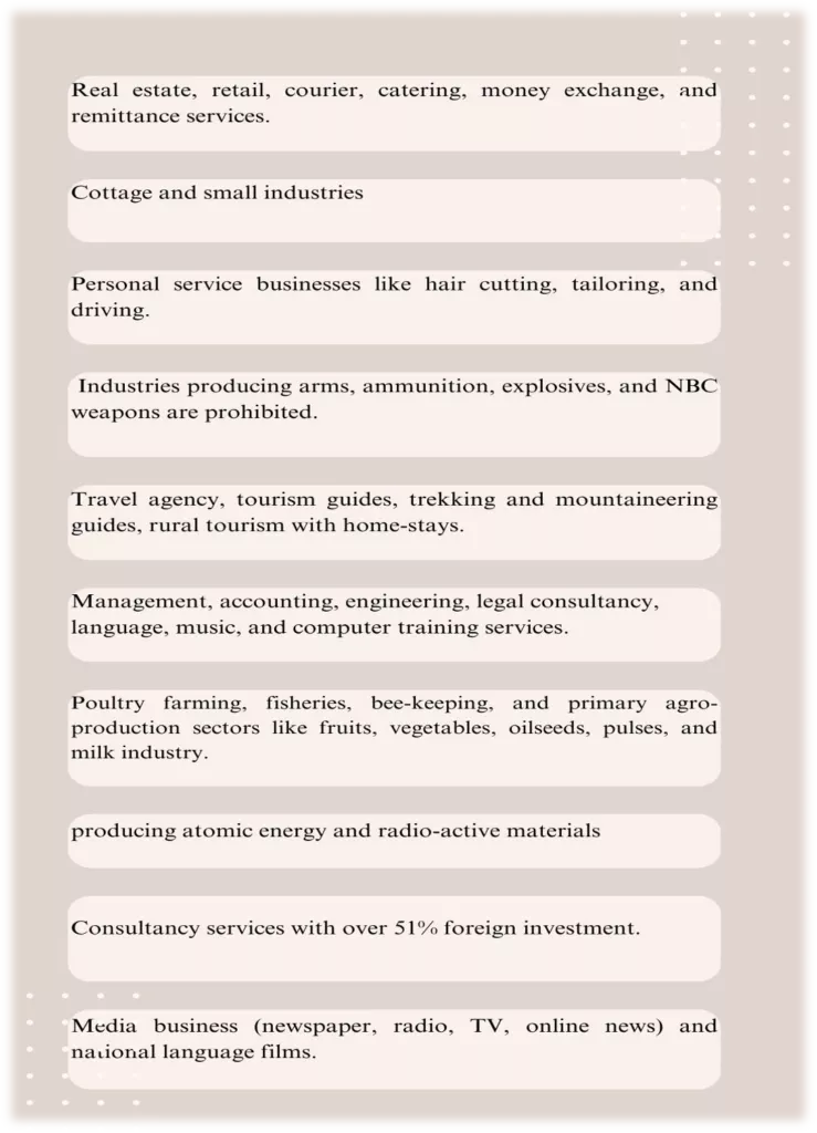 As per the FITTA Act, the NRNs are restricted from making investment in Nepal which consists of following: